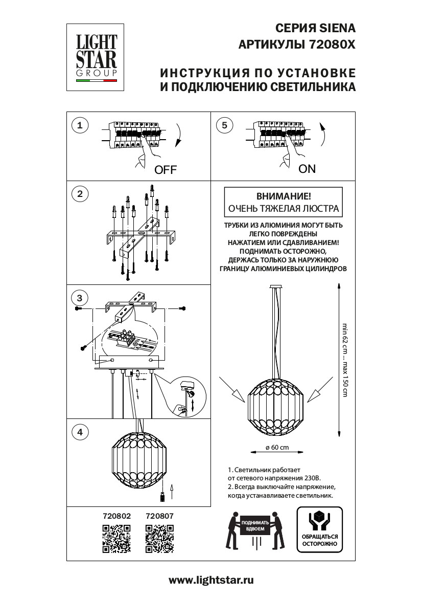 Подвесные люстра подвесная siena lightstar 720807